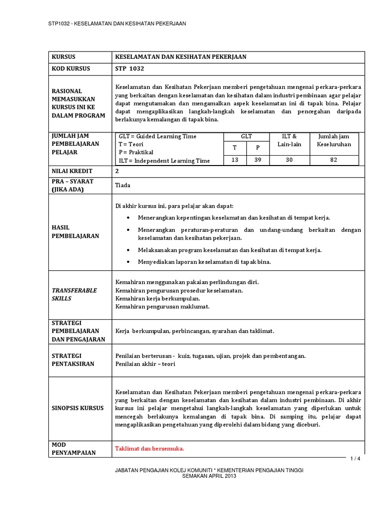 Stp1032 Keselamatan Dan Kesihatan Pekerjaan Pdf