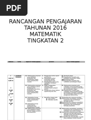 Rancangan Pengajaran Tahunan 2016 Math F2 Pdf